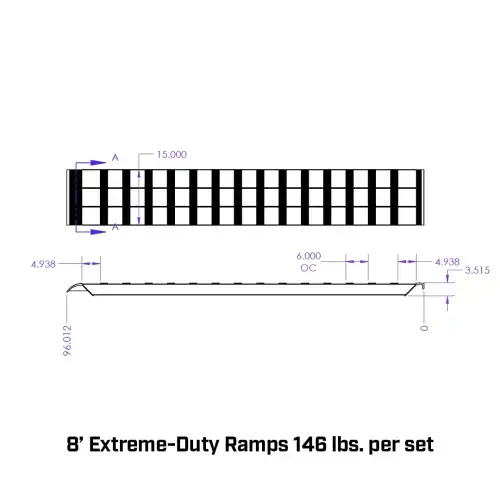 •8′ Ramps: 96″ Long x 15″ Wide x 3.5″ Thick