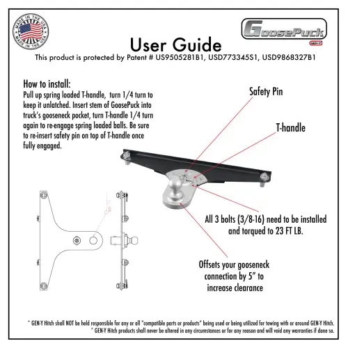 The GoosePuck is the first offset gooseneck ball to boast 100% compatibility with OEM Puck Systems. No need to purchase a bulky hitch for your truck bed, this solution offers a plug-and-play option to gain clearance using your existing OEM Puck system.