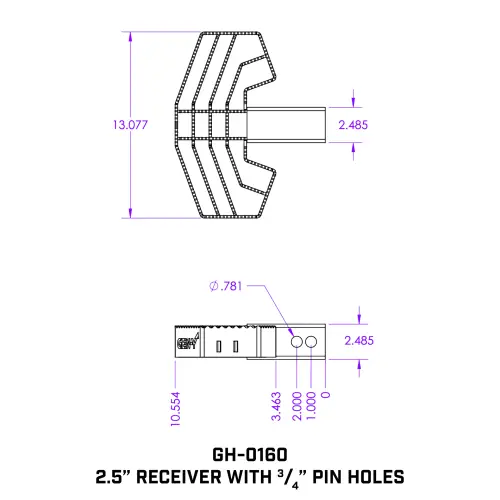 GEN-Y Hitch Serrated Hitch Step, 2 1/2" Receiver with 3/4" Pin Holes 2.5″ Shank 3/4″ pin holes ONLY compatible w/ 32K MEGA-DUTY Serrated Hitch Step 500 LB Capacity •Works with Gen-Y Hitches and Standard Receivers •Serrated No Slip Surface •Boot Scraper