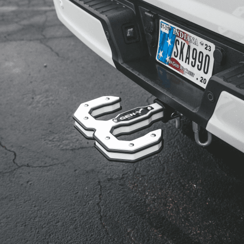 The Tow Hook/Hitch Step functions as both a tow hook and as a hitch step. The tow hook can be used in both the vertical and horizontal positions. This innovative product is the most heavy-duty tow hook and hitch step combo on the market.