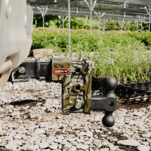GEN-Y Hitch X MOSSY OAK Hitch, 10,000 lbs. (2" Shank), 5" Offset Drop (4 Adjustable Positions), Includes Dual Ball Mount Available in a 10,000 lb., 16,000 lb., or a 21,000 lb. towing capacity MEGA-DUTY hitch. Offered in a 5″ or a 9″ drop and a 2″ or a 2.5″ shank. Customize the perfect hitch for your truck! MEGA-DUTY 2″ Offset Shank 2.5″ Rise, 5″ Drop 1.5K TW 10K Hitch & Dual Ball Mount – Bottomland Camo Hydro Dipped •Guaranteed - Smoothest Ride •5 Year - Torsion Warranty •Strongest - Adjustable Hitch on the Market