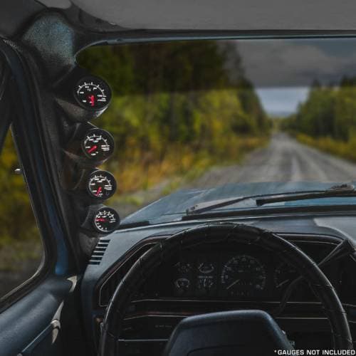 GlowShift’s Black Quad Gauge A-Pillar Pod for the 1987-1991 Ford F-Series Truck is made specifically for F-150, F-250 and F-350 OBS models with engines including the 6.9L IDI & 7.3L IDI. These gauge pods for Ford trucks allow you to install (4) 2-1/16” (52mm) gauges to the factory A-pillar of your 87-91 F-Series for a fully customized look. GlowShift’s Ford pillar gauge pods are manufactured from high quality ABS plastic to withstand cracking, fading and warping. They can also be painted using ABS plastic paint for a custom fit and finish. These OBS Ford gauge pods are ideal for housing a wide range of your favorite gauges so that you can effectively monitor key engine systems.