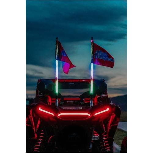The LED Whip Silver Xtreme is unlike any LED whip on the market. The 3' LED Whip Silver Xtreme has over 108 of the brightest LEDs, the 4' has over 144, and the 6' has over 215; and each change colors and settings with the simple push of a button on a wireless remote. Light up the night sky with your choice of over 300 modes, 5 brightness settings, and many speed controls. These whips really are amazing, and offer color changing, color chasing, build-up, and more.  There's not another LED whip out there that can match the brightness, color options, and the overall strength and durability of the Gorilla Whips LED Silver Xtreme... guaranteed! Great for UTVs, RZRs, ATVs, Dune Buggy, Sand Rails, Jeeps, and everything in-between. Stronger. Brighter. Better... Guaranteed!