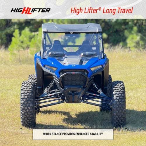 High Lifter Long Travel Kit for Polaris RZR 1000 XP (No Ball Joints, Bundle w/ Frame Stiffener) Push your RZR to its limits with a long travel kit from High Lifter. This kit comes with all new suspension components giving you a wider stance, more travel, and improved ground clearance. This kit doesn't just make your ride wider though, it was meticulously designed and tuned to maintain or improve the factory suspension geometry provide you with less bump steer and a better overall alignment.