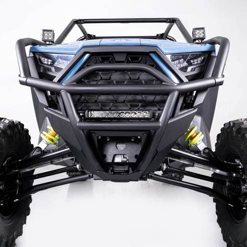 HMF 2.0 Front Bumper for Polaris RZR Pro XP/4, Black - Gloss The HMF HD 2.0 Front Bumper for the Polaris RZR Pro XP is engineered for durability, functionality, and style. Constructed from heavy-duty .095" steel tubing, this bumper delivers exceptional front-end protection, giving you peace of mind on the toughest trails. Designed with versatility in mind, it features an integrated light mount, compatible with LED light bars up to 10 inches or dual 4-inch square LED lights. Whether you’re riding day or night, the HMF HD 2.0 Front Bumper helps you light the way.