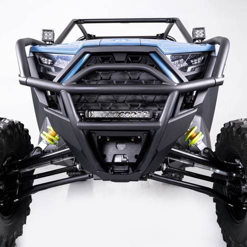 HMF 2.0 Front Bumper for Polaris RZR Pro XP/4, Black - Textured The HMF HD 2.0 Front Bumper for the Polaris RZR Pro XP is engineered for durability, functionality, and style. Constructed from heavy-duty .095" steel tubing, this bumper delivers exceptional front-end protection, giving you peace of mind on the toughest trails. Designed with versatility in mind, it features an integrated light mount, compatible with LED light bars up to 10 inches or dual 4-inch square LED lights. Whether you’re riding day or night, the HMF HD 2.0 Front Bumper helps you light the way.