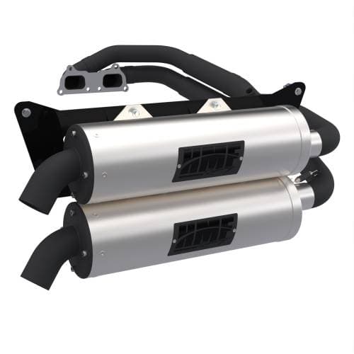 HMF Exhaust Systems for Polaris RZR XP 1000, Titan Quiet Series, Dual Full System, Stainless Steel, Billet - Recessed, Blackout End Cap Enhance your Polaris RZR XP 1000's performance with HMF Racing's Titan Series exhaust systems. Available in Slip On and Dual Full System options, these exhausts don't just enhance sound quality—they deliver substantial power gains across the RPM range. Experience heightened engine performance and a richer exhaust sound, elevating your off-road adventures to new levels. There is a 2-4 dB decrease in sound levels with Quiet Core Inserts installed on all systems.
