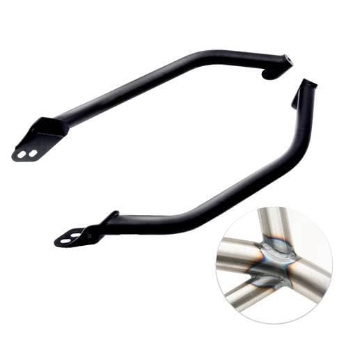 HMF Exo Guards for Polaris RZR Pro XP/4, Black - Textured The HMF Exo Guards for the Polaris RZR Pro XP provide added protection and structural reinforcement, acting as an exoskeleton for the front of your machine. Built from durable .095" steel tubing, they seamlessly integrate with the HMF HD 2.0 Front Bumper and the factory cage for a stronger, more rugged setup. Weighing just 15 pounds, the Exo Guards feature accessory mounts for additional lights and accessories, while enhancing durability without adding unnecessary bulk. Add to your HMF HD 2.0 Front Bumper with the durable and lightweight HMF Exo Guards.