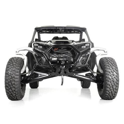 HMF HD Front Bumper for Can-Am Maverick R, Black Upgrade your Can-Am Maverick R with the rugged HMF HD Front Bumper. Engineered from heavy-duty .095" steel DOM tubing, this bumper offers robust protection for the front end of your Maverick R. The integrated winch plate can accomodate winches up to 6000lb, or act as a light mount to accommodate LED light bars up to 10", or (2) 4" square LED lights. For your winch location, you can either keep the winch in its factory position, or you can mount it higher on the HMF HD Bumper for easier access and to keep it out of the mud. The HD Bumper is available in 6 durable, UV-resistant powder coated colors that seamlessly match the stock color schemes on the Maverick R. Whether you’re navigating rocky terrains, tackling muddy trails, or simply upgrading your machine, the HMF HD Bumper delivers increased functionality in a sleek, aggressive design. Designed to provide extreme support, the HMF HD Exo Front Bumper adds even more protection. Acting as an exoskeleton, the HMF Exo HD Front Bumper uses rugged .095" steel DOM tubing to add additional protection and support.