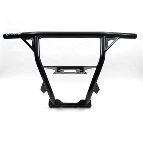 HMF HD Front Bumper for Honda Pioneer 1000, Raw The HMF HD Front Bumper for the Honda® Pioneer 1000 is constructed from .095” wall steel tubing and not only protects the front of the machine but also offers an integrated winch mount plate. The bumper comes with a 3/16” aluminum skid plate with a cutout to mount a winch fairlead. The bumper works with UTV fairleads with 6” mounting hole spacing. LED lights may also be mounted on the bumper. All necessary hardware and instructions are included.