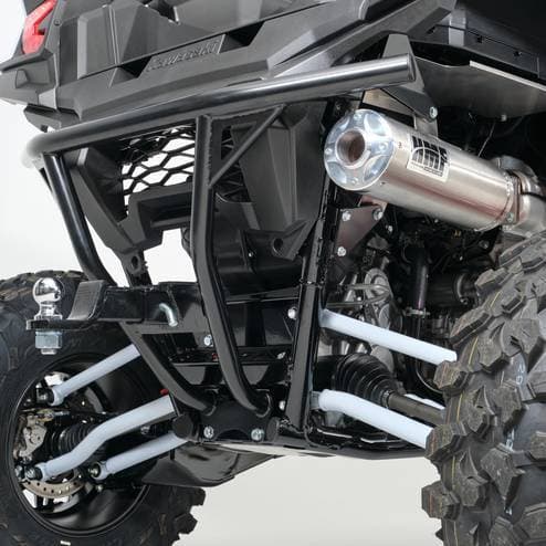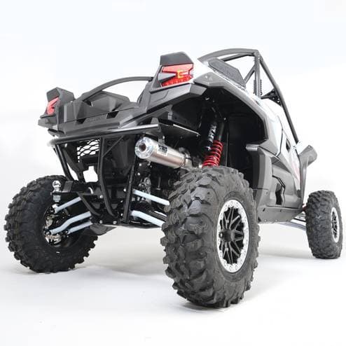 The HMF Defender Rear Bumper for the Kawasaki Teryx KRX 1000 is constructed from .095” wall steel tubing and powder coated for the ultimate protection for the rear of the Teryx® KRX 1000. The rear bumper easily mounts to the frame of the vehicle and provides the strength and protection to handle even the most demanding situations. The bumper features an optional 2" hitch receiver that will not inhibit ground clearance or approach/departure angle and extends only 3.5" past the rear fascia to provide easy access to the cargo bed and keep from adding excessive length to the vehicle.