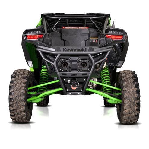 HMF Rear Bumper for Kawasaki Teryx 4 / Teryx 5 H2 (Raw) The HMF Rear Bumper for the Kawasaki Teryx 4 / Teryx 5 H2 is constructed from .095” wall steel tubing and powder coated for the ultimate protection for the rear of the Teryx H2. The rear bumper easily mounts to the frame of the vehicle and provides the strength and protection to handle even the most demanding situations. The bumper features sleek contour to keep from adding excessive length to the vehicle.