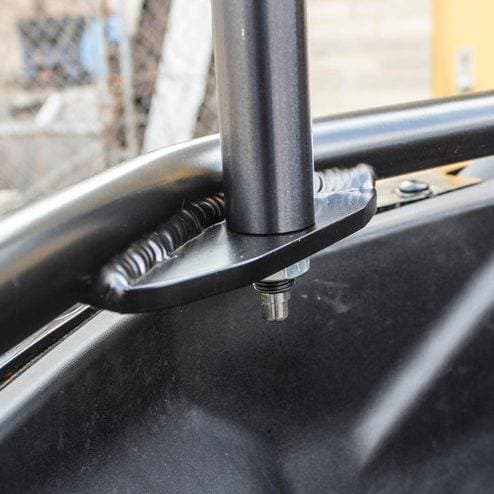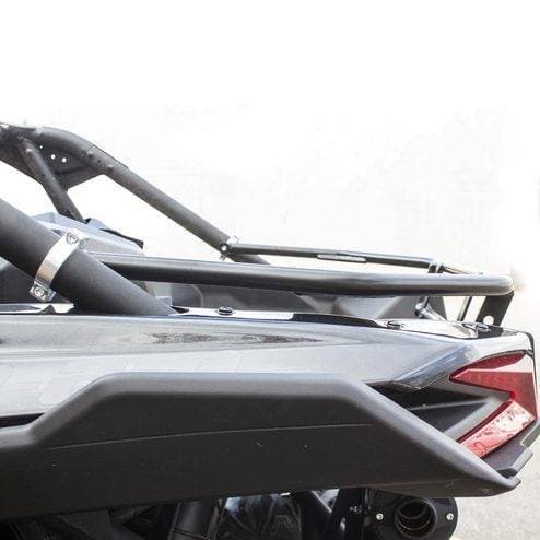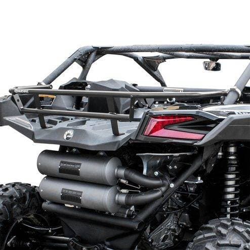 The Rear Cargo Rack for the Can-Am Maverick X3 MAX is a functional addition to the X3 rear. The rack acts as a tailgate that allows you to strap down and carry cargo from one destination to another. It's constructed from lightweight aluminum, features a whip/flag mount, and attaches to the stock cage with the HMF™ Accessory Clamps.