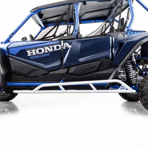 HMF Rock Sliders for Honda Talon 4, Red The HMF Rock Sliders for the Honda® Talon 4 1000R/X are designed to take the hit so your machine doesn’t. Whether you're tackling rocky trails, weaving through trees, or navigating tough terrain, these sliders protect your side panels from impact. Made with durable .095” wall steel tubing, they’re built to last and add a rugged, aggressive look to your ride. What sets these Rock Sliders apart is the integrated Traction-Grip, featuring a rugged tooth design that provides exceptional grip when stepping on them. It’s a game-changer for riders who need a secure foothold while getting in and out of their vehicle. Installation is straightforward, as the sliders mount directly to the stock frame, and all the necessary hardware and easy-to-follow instructions are included, making it a hassle-free upgrade for your ride.