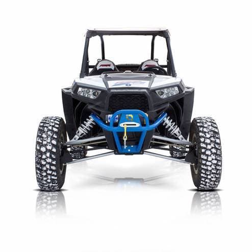 HMF U4 Front Bumper for Polaris RZR XP/4 1000, Black - Textured The HMF U4: Front Bumper for the Polaris RZR XP® 1000 is built from .095" steel tubing and offers an increased form of protection. The U4 bumper can house most winches up to 4,500lbs and works with UTV fairleads that have 6" mounting hole spacing. LED Lights and a UTV Fair Lead can be installed on the bumper and the bumper itself adds an incredible look to the front of the machine.
