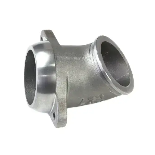 The Industrial Injection K27 Exhaust Outlet Elbow is a stock replacement elbow for your 1992-2002 Cummins trucks with v-banded 5 bolt flange. After years of weathered abuse the factory cast elbows that connect between your turbo and downpipe become rotted out and break bolts, causing exhaust leaks resulting in a loss of performance and a nasty mess under the hood. Instead of spending hundreds of dollars on a factory OE elbow this is a great affordable replacement upgrade.