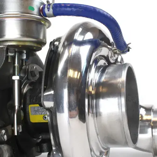 The Silver Series PhatShaft is our latest effort to achieve perfection. Much like the Super PhatShaft it was designed to handle multiple fueling upgrades and comes in three sizes. 62mm 64mm, and 66mm and now 69mm. What separates the Silver Series PhatShaft from the Super PhatShaft is our new technology 74mm turbine wheel. To improve on the Super PhatShaft turbos we needed improve performance at a lower rpm range and we needed to reduce compressor surge. The solution is the 74mm turbine which is the latest in turbine trim design technology. The new trim design transfers exhaust gas energy more efficiently than any other turbine on the market. It also allows for better exhaust gas expulsion which results in lower EGT’s and quicker rotor acceleration. The most important benefit of the 74 mm turbine wheel is that it gets rid of turbo surge and broadens the power range. All silver series turbo come with a 360 degree thrust bearing and an appealing polished compressor housing. The Silver series utilizes the proven 14cm exhaust housing with a modified exhaust nozzle. We maximize the wastegate ports in the 14cm housing by enlarging the diameter. The turbine housing wastegate cover it custom build to allow full wastegate travel. Like all PhatShaft turbochargers they are equipped with dual grooved high performance bearings and an adjustable boost elbow.