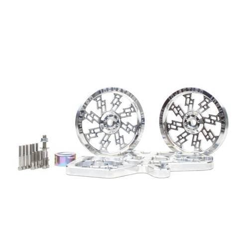 The Industrial Injection Triple CP3 Kit is designed for those looking to push the limits of the diesel world and take the industry to the next level in performance. Besides looks the large 10" billet cp3 pulley's slow down the rotation of the pumps allowing them to be much more efficient at higher engine RPMs. This allows for increased fuel volume, pressure and pump life out of the cp3 injection pump.