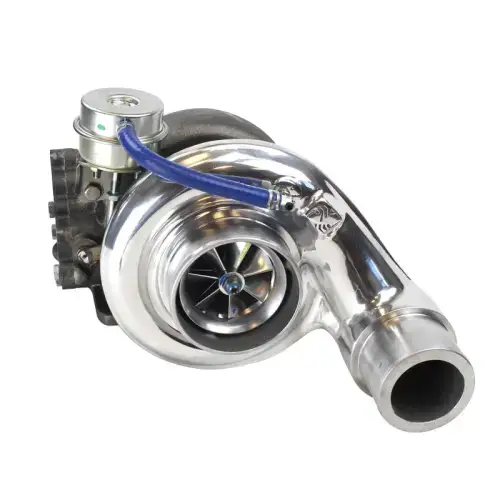 The Industrial Injection Viper PhatShaft Series Turbos were designed to handle mild fueling upgrades to help increase overall performance and be perfect for towing, daily driving or street performance. The PhatShaft comes equipped with an extended tip 62mm, 63mm or 64mm forged milled compressor wheel and 360 degree thrust bearing. The PhatShaft utilizes the 68mm turbine wheel and is available in a 12cm or 14 cm exhaust housing in which we modify the angle of the exhaust nozzle, maximize the wastegate ports, and enlarge the wastegate chamber for full wastegate travel. Like all PhatShaft turbochargers it is equipped with dual grooved high performance bearings and an adjustable boost elbow. We recommend the 12cm Housing for 12 valve and 24 valve trucks for faster spool up.