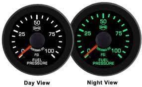 Isspro Enhanced Visibility 2 (EV2) Fuel Pressure Gauge Kit is calibrated to 0-40psi with a black face, red pointer, black bezel, and green lighting. Isspro EV2 electric gauges are built with microprocessor-controlled stepper motor movements, LED back lighting, precision senders, and sweep 270 degrees.