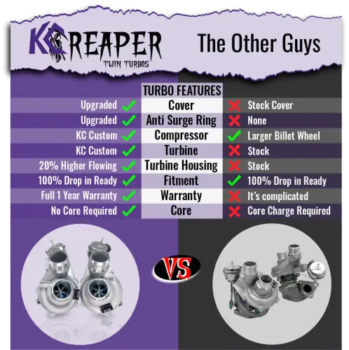 With these upgrades, your 3.5 engine will have the potential to outperform even the Coyote. Please note that HP levels are very reliant on Octane levels. To get the maximum performance out of your new turbos we highly recommend 91-93 octane or even running and ethanol blend of e30. If using higher ethanol blends (E40-E80), it may be necessary to upgrade the stock low and high pressure fuel pumps. Please contact your tuner with any questions.