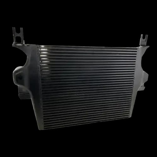 This heavy duty intercooler drops straight into the factory location with no modification required and is manufactured to provide colder boost temps, lasting durability, and our cast aluminum end tank design can be used with OEM or aftermarket boots and charge pipes!