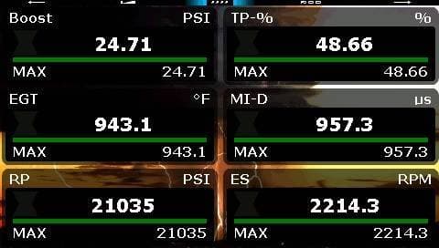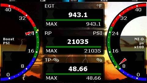 -Each gauge stores/updates and displays the max reached PID value continuously.