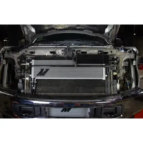 There's no question that the 2017-2019 Ford 6.7L Powerstroke with the 6R140 TorqShift Transmission is a workhorse, and it's thanks to the hearty transmission handling the distribution of mountains of torque. Keeping the transmission cool in your 6.7L Powerstroke is vital, and we here at Mishimoto have just the thing. The Mishimoto Transmission Cooler for the 2017-2019 Ford 6.7L Powerstroke combines the power of air and liquid cooling with the integration of our kit into the stock system. Our application-specific hard lines are molded to perfection for a secure connection from the factory cooler to our additional tube-and-fin cooler and complete with application-specific adaptors for simple integration. Our liquid-to-air tube-and-fin cooler features 19 rows of fluid tubes and internal turbulated fins to maintain peak operating temperatures for your transmission's temperatures properly. Our cooler mounts to the truck with a pair of robust steel brackets to ensure your cooler stays in place no matter the job your 6.7L Powerstroke is undertaking. The Mishimoto Transmission Cooler for the 2017-2019 Ford 6.7L Powerstroke with the 6R140 TorqShift transmission is available in a silver powder coat and is covered under the Mishimoto Lifetime Warranty for a worry-free installation.