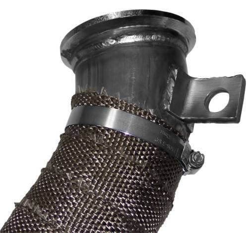 Remove your crushed oval-shaped stock down-pipe and replace it with a smooth, round, long-lasting full 304 stainless steel Down-Pipe from PPE. This kit now includes PPE Down Pipe Support Bracket. This bracket secures your PPE Down-Pipe and prevents movement. Fabricated from 1/8” 304 stainless steel.
