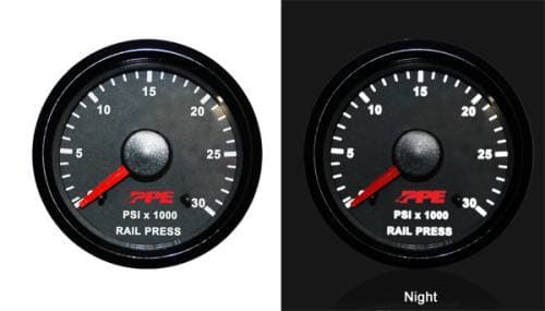 Performance gauges are an inexpensive way of ensuring your vehicle is operating safely and properly within specifications. This fuel rail pressure gauge will be a great addition to your Duramax diesel and comes with white lettering on black face and bezel with orange needle, dimmable white LED illumination for night time visibility and can measure fuel rail pressure from 0 to 30,000psi.