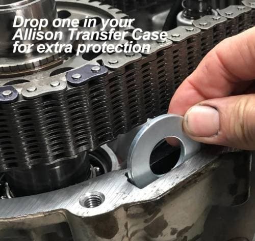 Pump rub occurs when the four positioning tabs holding the pump in place wear over time. This causes the oil pump to come into contact with the housing itself. The result is a hole worn in the cover, causing fluid to leak and the probability of damaging the transfer case. This simple kit eliminates this problem.