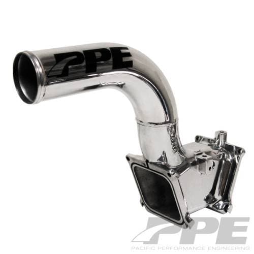 High performance engines require sufficient airflow as well as fuel to be optimally efficient. PPE’s High Flow Intake Manifold eliminates the restrictive air intake heater and quickly channels every precious pound of turbo boost into the engine. The result is more horsepower and lower EGT’s. The light-weight aluminum design features a relocation port for turbo boost pressure sensor. Not compatible with EGR or stock turbo inlet. Great for Marine or Hot Rod racing applications.
