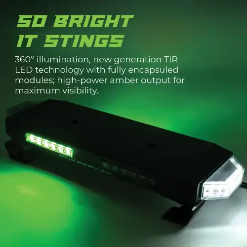 •Green, Amber & White Strobes: Be Safe and Be Seen. Prioritizing safety with cutting-edge lighting tech and unmatched brightness.