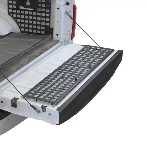 Putco MOLLE Panel for Ford F-150 (5'7" Bed/6'7" Bed, Tailgate Panel w/o Tailgate Work Surface) Secure your truck-bed cargo with Putco’s MOLLE Truck Bed Panels – a premium modular storage system for your truck bed. Designed from genuine OEM CAD, Putco’s MOLLE system is ideal for keeping your gear organized and accessible throughout your journey – whether you’re heading to the worksite, on an overland excursion, tailgating, or running everyday errands. Available for the bulkhead, driver side, passenger side, tailgate, or a full kit. Putco offers rack configurations ranging from individual panels to full systems. Putco MOLLE Panels provide versatile mounting options for your gear, tools, and other essentials, keeping them protected and within reach. Constructed from durable 20-gauge 6061 aluminum, Putco MOLLE Panels are finished with a mini-textured black powder coat to provide maximum protection of the product’s premium finish. This American-made panel system is compatible with most industry-leading mounting accessories, including Putco’s own line of MOLLE accessories, such as our MOLLE Grips, Injection-Molded MOLLE Mounts, Stainless Steel MOLLE Mounts, and Milwaukee Packout MOLLE Brackets. Putco MOLLE Panels are also compatible with leading brands, such as RotoPax, MaxTraxx, QuickFist, Kolpin, and many others. Furthermore, Putco MOLLE Panels are compatible with most tonneau covers and toppers. Installing a MOLLE Panel is a straightforward process that requires no drilling or cutting. Its custom design for your specific year, make, and model allows you to utilize standard OEM truck bed features such as tie-down anchors, storage boxes, electrical outlets, and bed lighting. If you’re looking to secure loose cargo and upgrade your truck bed with a rugged, professional storage solution, Putco MOLLE Panels are the answer.