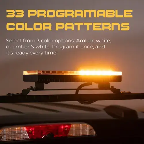 •33 programmable light patterns: With dual-zone lenses and high-power amber and white LEDs for versatile flashing options.