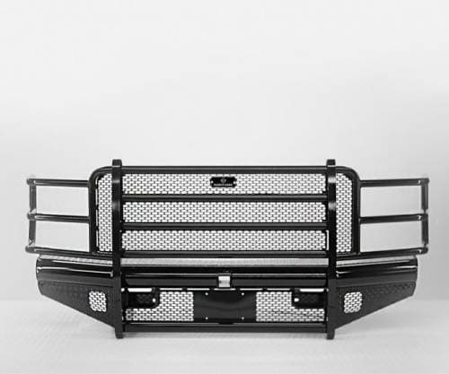 Large honeycomb shaped custom grille insert matches the Ford grill design. Fog lights and tow hooks can be retained. Receiver tube and license plate holder are standard features. Ranch Hand's Legend Front Bumper Replacement provides maximum protection for your vehicle. The front bumper replacement is designed to take an impact both on and off the road. This is the toughest product on the market and has been field tested in extreme conditions. Each Ranch Hand Front Bumper Replacement is finished with the highest quality super polyester black pearl powder coating available today for superior corrosion resistance. Standard features include custom punch plate grille insert and 2" receiver hitch. Winch applications for the 15k include WARN 16.5ti Thermometic, M15000, M12000, 9.5si M.O.S.F.E.T., 9.5ti, HS9500i, XD9000i, X8000i, and the following WARN winches require bracket number 26368, 9.5xp, HS9500, XD9000, M8000, M6000, TABOR 9K, and TABOR 12K; Ramsey Patriot 9500, Patriot 8000, Patriot 6000; Mile Marker Hydraulic Winches, 8000 Electric, 9000 Electric, and 12000 Electric. Note: Adding a body lift to your vehicle will affect the fit of this product.