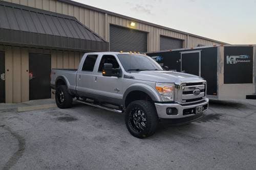 Tire Size Note: ReadyLIFT wheel and tire fitment recommendations are typically based on Wheel Pros wheels and Nitto tires. Due to product differences among tire manufacturers, tire specifications and dimensions including, but limited to, overall diameter, rolling diameter, tread width, aspect ratio, lug pattern, sidewall construction and inflation pressure, will vary meaningfully by tire and wheel manufacturer. Every tire and wheel combination should be test fit prior to installation. Consult your local installer to learn more about the right tire fitment for your application.