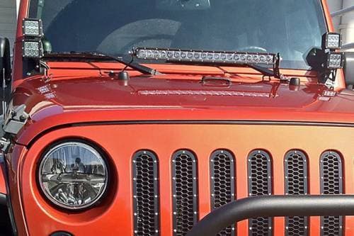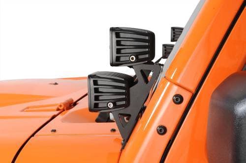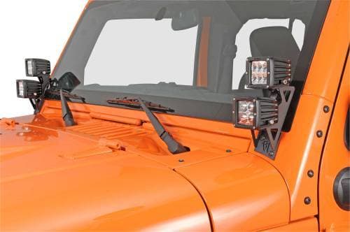 These Jeep JK A-Pillar Mounts allow you to install two Dually or D2 LED lights (not included) to each of your A-pillars. These brackets use existing mounting bolts - no drilling or cutting required. They will give your JK a clean, from-the-factory look and allow for vertical adjustment of the beam. These brackets are made from 3/16" stainless steel and are powder-coated black to match your trim and your Rigid Industries D-Series lights. These mounts are backed by Rigid Industries' limited lifetime warranty.