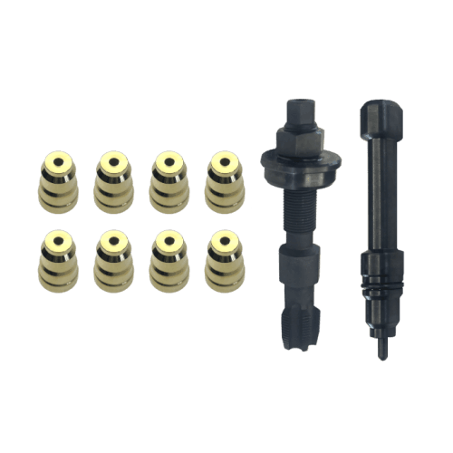 The included tool is shorter than an injector, allowing complete sleeve service directly in the truck with no slide hammer required — a major time and labor saver. Constructed from black oxide–coated solid steel and manufactured entirely in the USA from U.S.-sourced materials, it’s built to withstand years of heavy shop and field use. The supplied injector sleeves meet OEM specs for a precise fit to restore the barrier between high-pressure fuel and the coolant system.