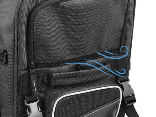 Smaller side mesh vents are permanently open to always allow some airflow into the carrier