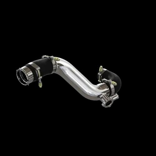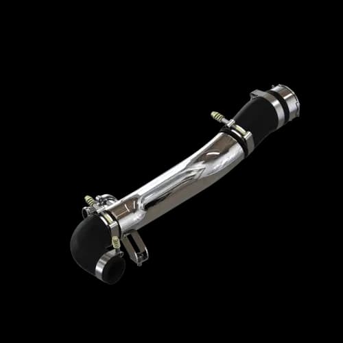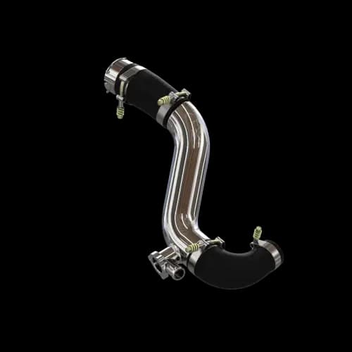 Polished aluminum pipe with aramid-reinforced and FKM lined silicone hose, this hot side intercooler pipe for the 2.3L EcoBoost 2019-2023 Ranger is built to last and improve airflow vs stock.