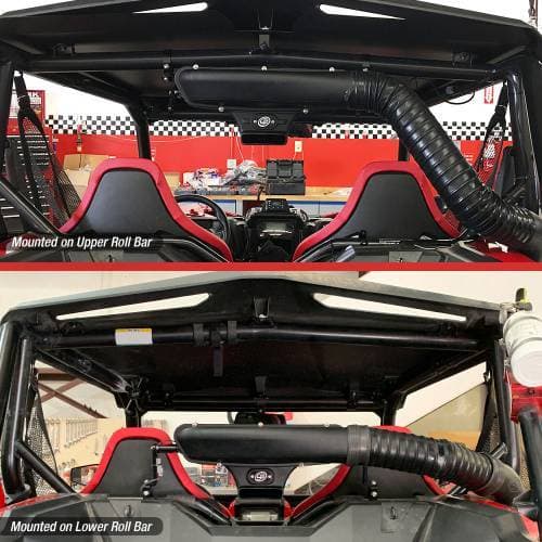 The Particle Separator’s versatile billet clamps allow it to be installed in many positions on either the upper or lower roll bars of your UTV and accommodates most roof configurations. If you have a custom cage or roof, larger clamp and spacer kits are sold separately if needed to ensure a secure fit to your UTV.