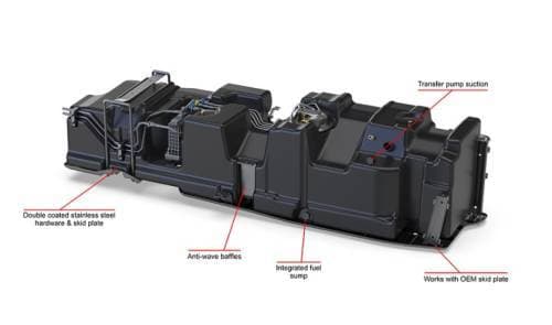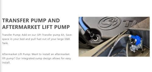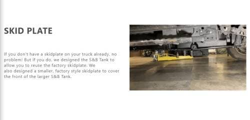 Looking to run a sump with this tank? Well, S&B is way ahead of you by integrating a sump right into the tank. You heard right, there's no need to drill a big hole in the bottom of your new tank. Just remove the aluminum plug, drill and tap a 5/8" hole and you're ready to plumb right into your fuel system using the supplied fittings that follow the channel in the tank. Sticking with an easy to install theme, your factory sending unit requires no modification for installation, just drop it in following factory procedures. Both the vent and rollover vent are made from brass as well as the transfer pump fitting which gives you the ability to draw fuel directly from the tank instead of putting an additional fuel tank in the bed (transfer pump coming soon). If your factory fuel tank came equipped with a skid plate, it may be reinstalled on the bottom of the new S&B tank! Backed by S&B's limited lifetime warranty.