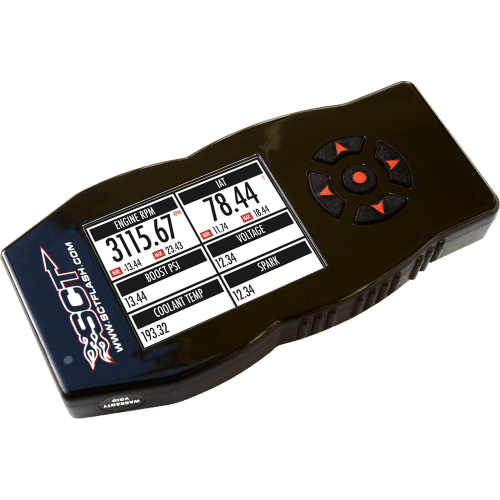 With a HUGE Backlit display, the SCT X4 Power Flash makes it EASY to read the Built-In Data Logging or Real Time Monitored Vehicle Data, view popular sensor data such as EGT, Air / Fuel Ratio or any other 0-5 Volt source!