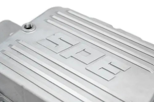 SPE Motorsport 10R140 Deep Transmission Pan for Ford F-250/F-350/F-450/F-550 6.7L Power Stroke (Black) Upgrade your vehicle's transmission performance and reliability with the SPE Motorsport 10R140 Deep Transmission Pan. Whether you seek enhanced fluid capacity, superior cooling, or rugged style, our transmission pan delivers on all fronts. Upgrade Your Transmission with Confidence. Our transmission pan is engineered to provide you with exceptional reliability and improved functionality. The 6r140 is an excellent transmission but benefits greatly from added capacity and strength at the pan rails. Enhanced Fluid Capacity for Optimal Performance. With an approximate 8-quart fluid capacity upgrade, this pan ensures your transmission has an ample supply of fluid to operate at peak efficiency, especially during demanding conditions. More volume helps the 6R run cooler and extends change intervals. Customize Your Look. Pick between a classic wrinkle powder coat black finish or raw aluminum to match your preferences. Effortless Maintenance. Featuring a large ¾ NPT drain plug this makes it hard to strip and easy to replace if lost. Fluid changes are a breeze when draining due to the large hole size. Advanced Cooling. The combination of internal and external cooling fins provides efficient heat dissipation, helping to maintain lower fluid temperatures even under heavy use. Factory Magnet Retained. We understand the importance of retaining the factory magnet for effective debris capture. Our pan is one of the few that preserves this essential feature. The magnet bolts into the pan and can easily be removed for cleaning. Built Tough for Added Strength. Crafted with durability in mind, this transmission pan is not just an upgrade; it's designed to stiffen the transmission case, acting as a girdle to provide additional strength and resilience.