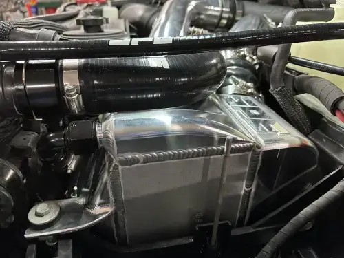 In the design process, SPE took into account a lot of factors with a specific focus on the intercooler core. The “normally available” cores on the market are designed around the use of ice water, which just doesn’t cut it. The secondary system cools with 110°F water; this was a key factor in developing an efficient and high-flowing core. Thus, the intercooler core (dubbed The Booklung) is specifically designed by SPE for the 6.7L Powerstroke. It has been designed around the actual operating temperatures of the secondary cooling system and not around the use of 30-45°F water that most intercooler cores are designed for.