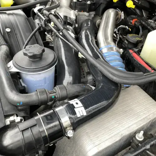 This turbo system does NOT require any extra components*. It can be used as a 100% drop-in replacement or as an upgrade. It uses the factory driver’s side manifold and an included, SPE designed, aftermarket passenger side manifold. This kit maintains the factory driver side up pipe (passenger side up pipe and manifold are no longer used), 2015+ style downpipe, 15+ lower intake manifold, and 11-19 upper intake manifold.