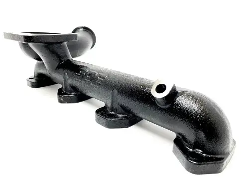 •Exhaust Manifold- Cast out of 600 series ductile iron. SPE’s design retains the original Hot-V principles of getting the heat and exhaust flow to the turbo as quickly as possible. SPE designed the manifold to operate with dual-volute T4 turbos. This manifold also has exhaust pulse optimization based on runner lengths and engine firing order, one major key to great turbo spool up. A factory EGT bung is also cast in.