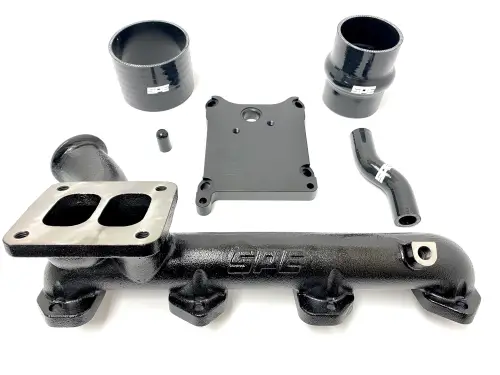 This turbo system does NOT require any extra components*. It can be used as a 100% drop-in replacement or as an upgrade. It uses the factory driver’s side manifold and an included, SPE designed, aftermarket passenger side manifold.