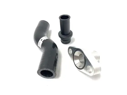 •Pedestal - The Pedestal is hard anodized to minimize oxidation and corrosion common on raw aluminum. When bolted to an iron block this helps to also minimize leaks over time. The oil return is a form fit silicone hose allowing for easy turbo installation and is much more reliable than a steel flex drain. The drain is also a no fuss push-in design with no fittings to tighten or worry about.